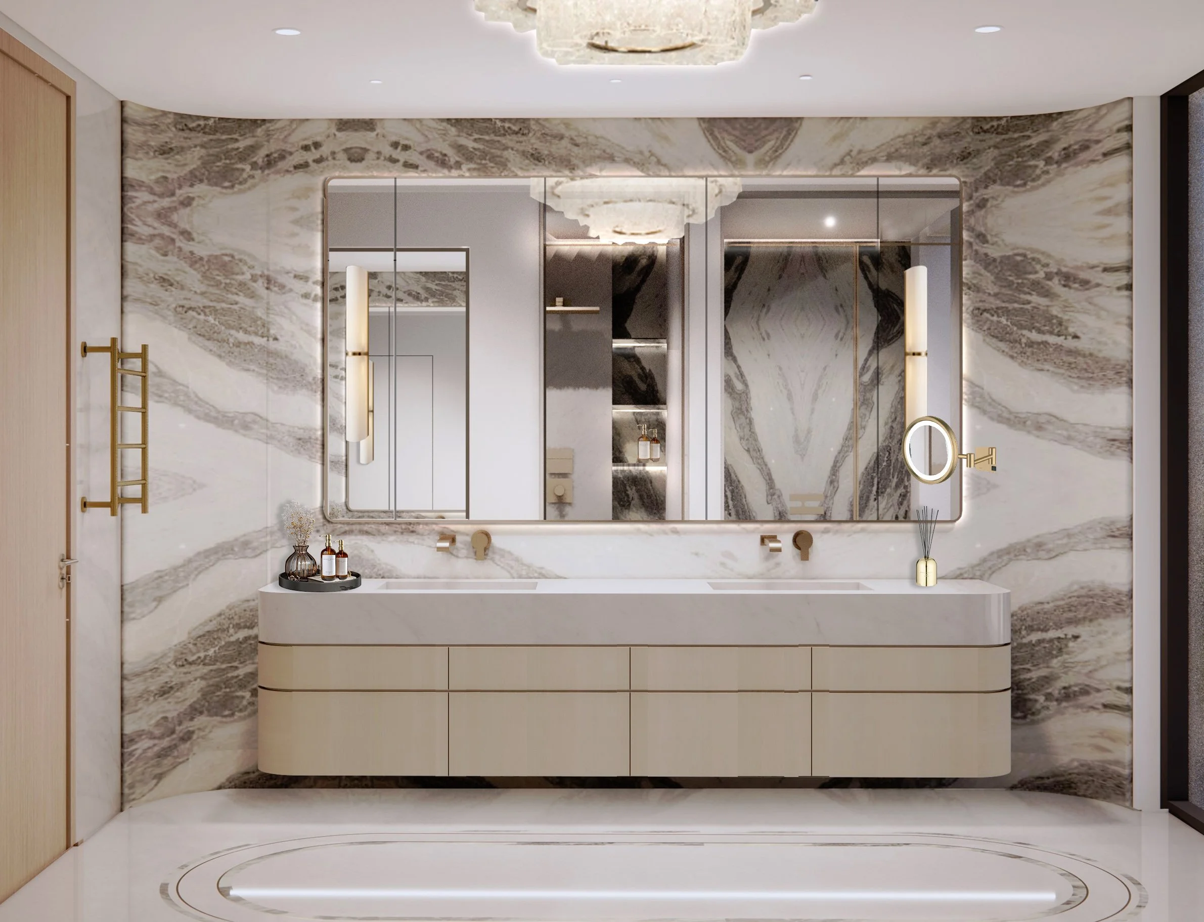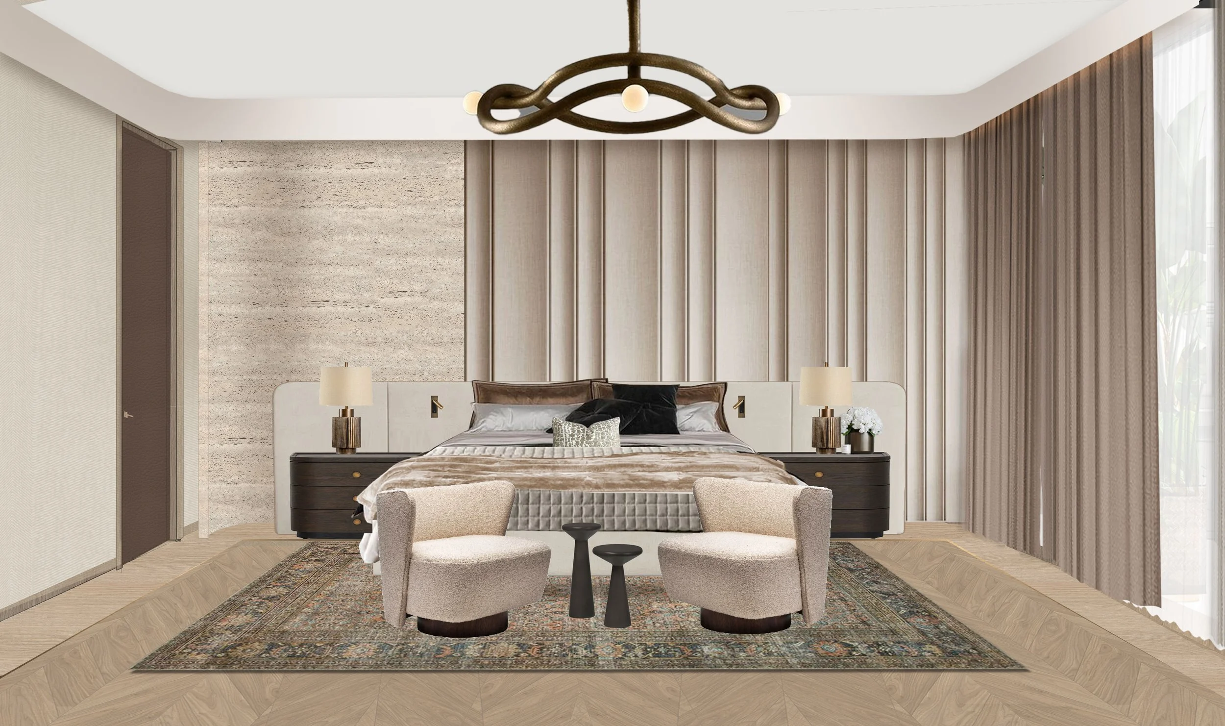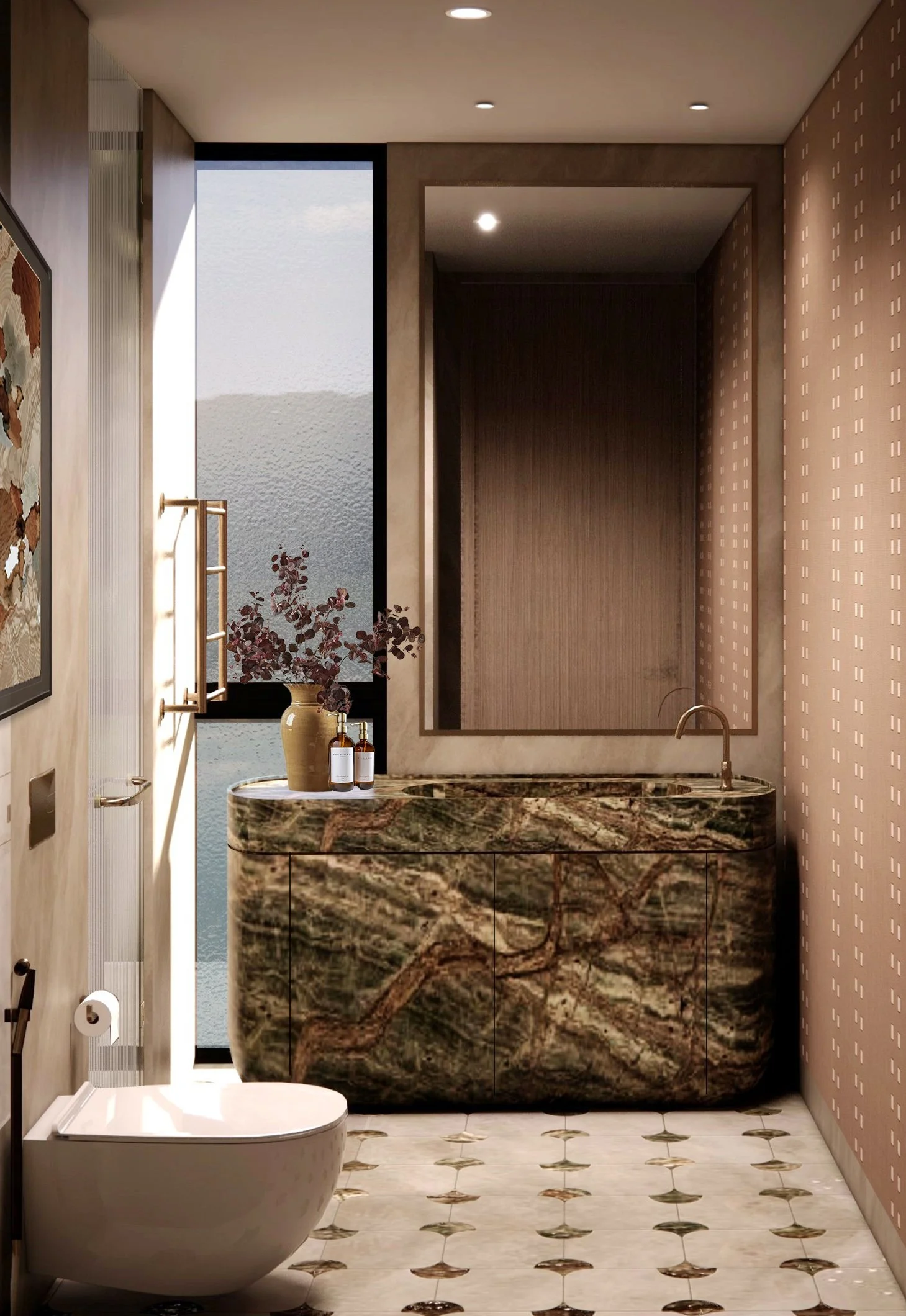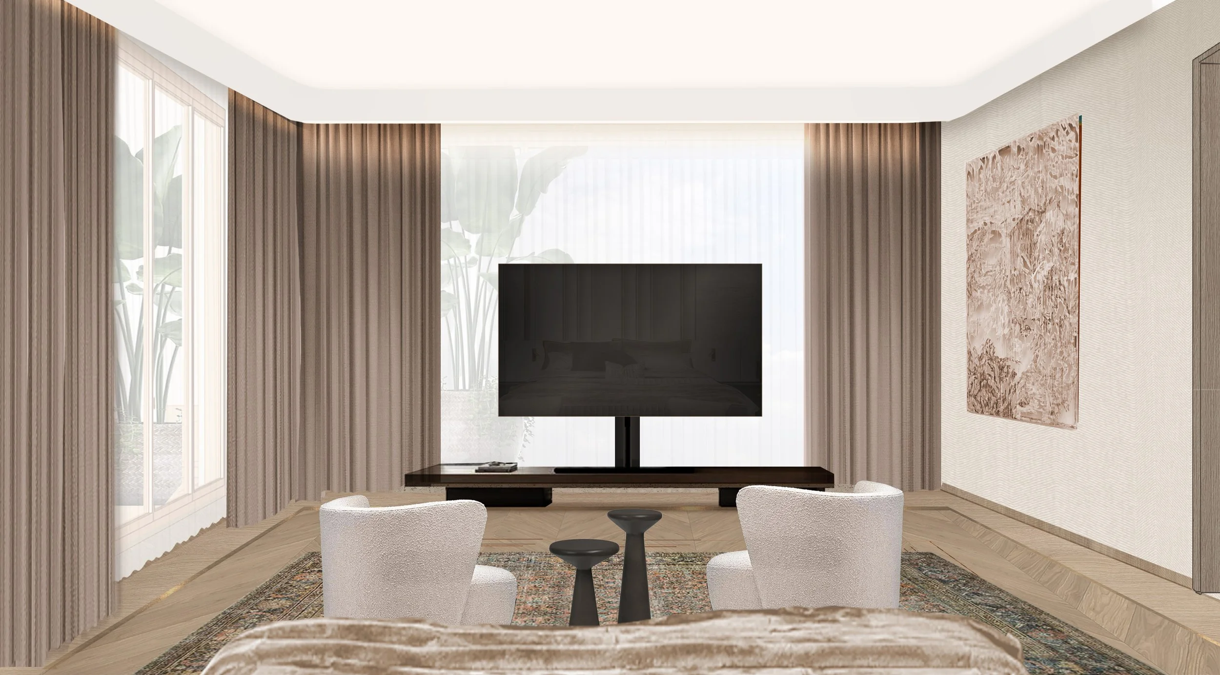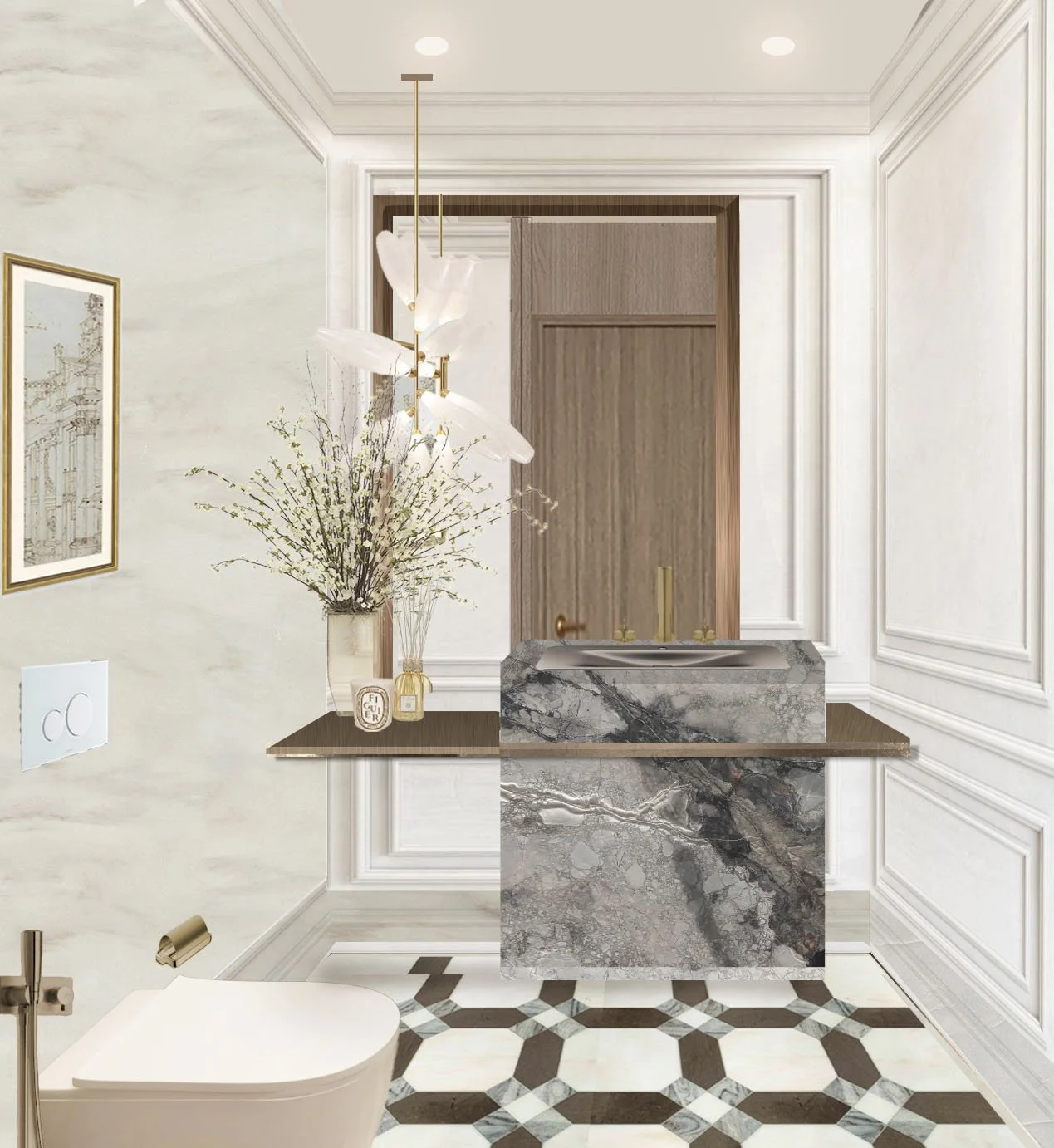 This penthouse is envisioned as a journey through spaces—from sunlit decks and a soaring double-height living room to a refined dining area and an intimate study designed for reflection. Private suites offer indulgent bathrooms, while every corner reflects a dialogue between grandeur and comfort. Designed as the family’s base in India, complementing their other homes abroad, the design blends handcrafted details with modern sophistication, layering textures, light, and proportion to create harmony. This shapes a penthouse that embodies timeless contemporary luxury.