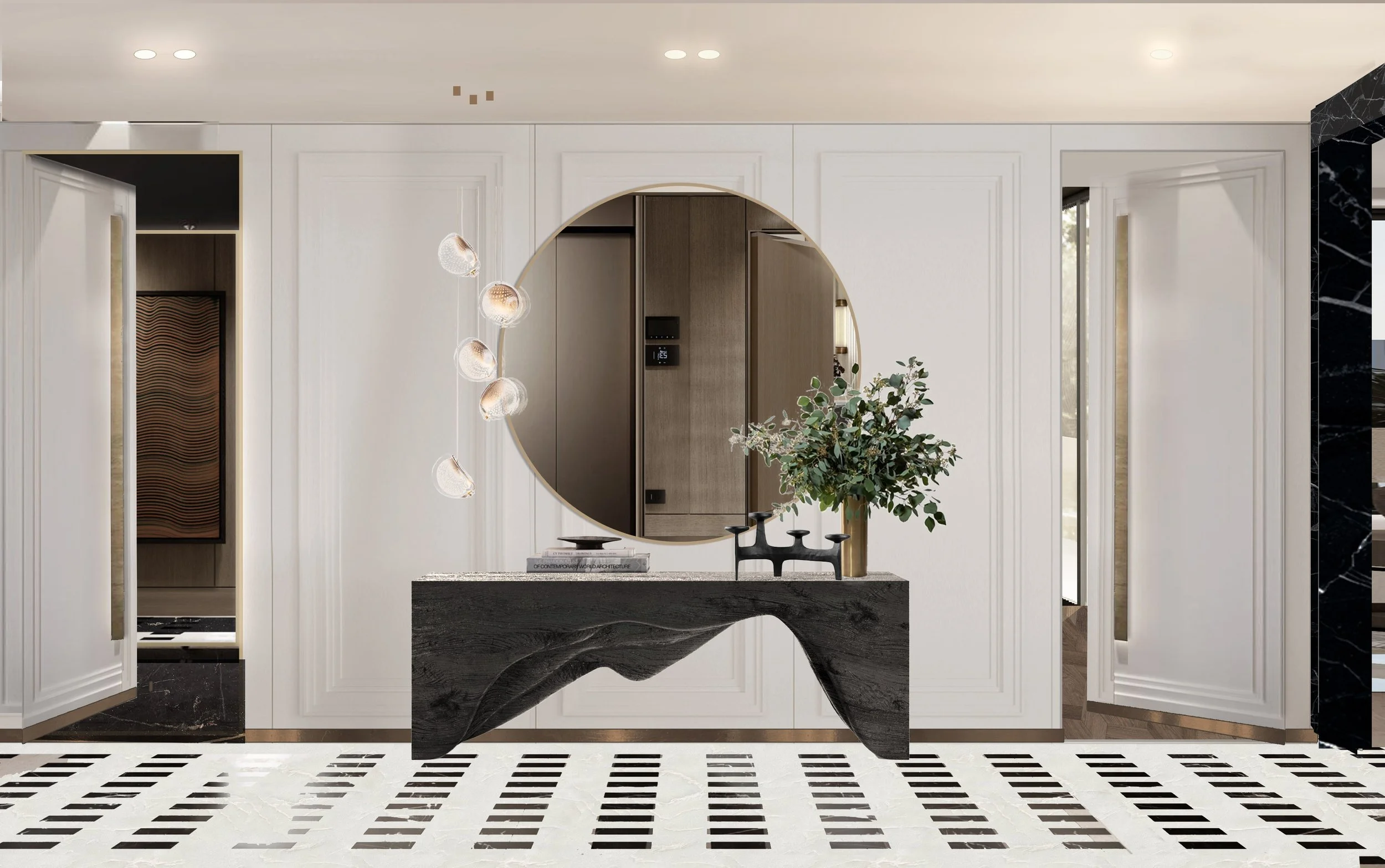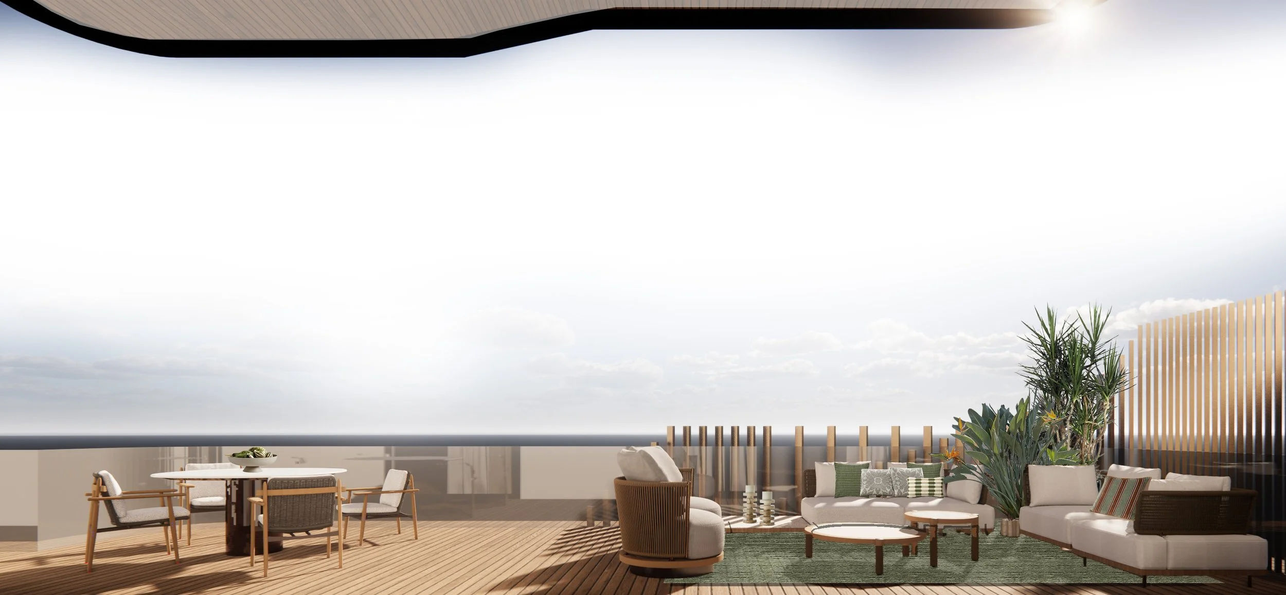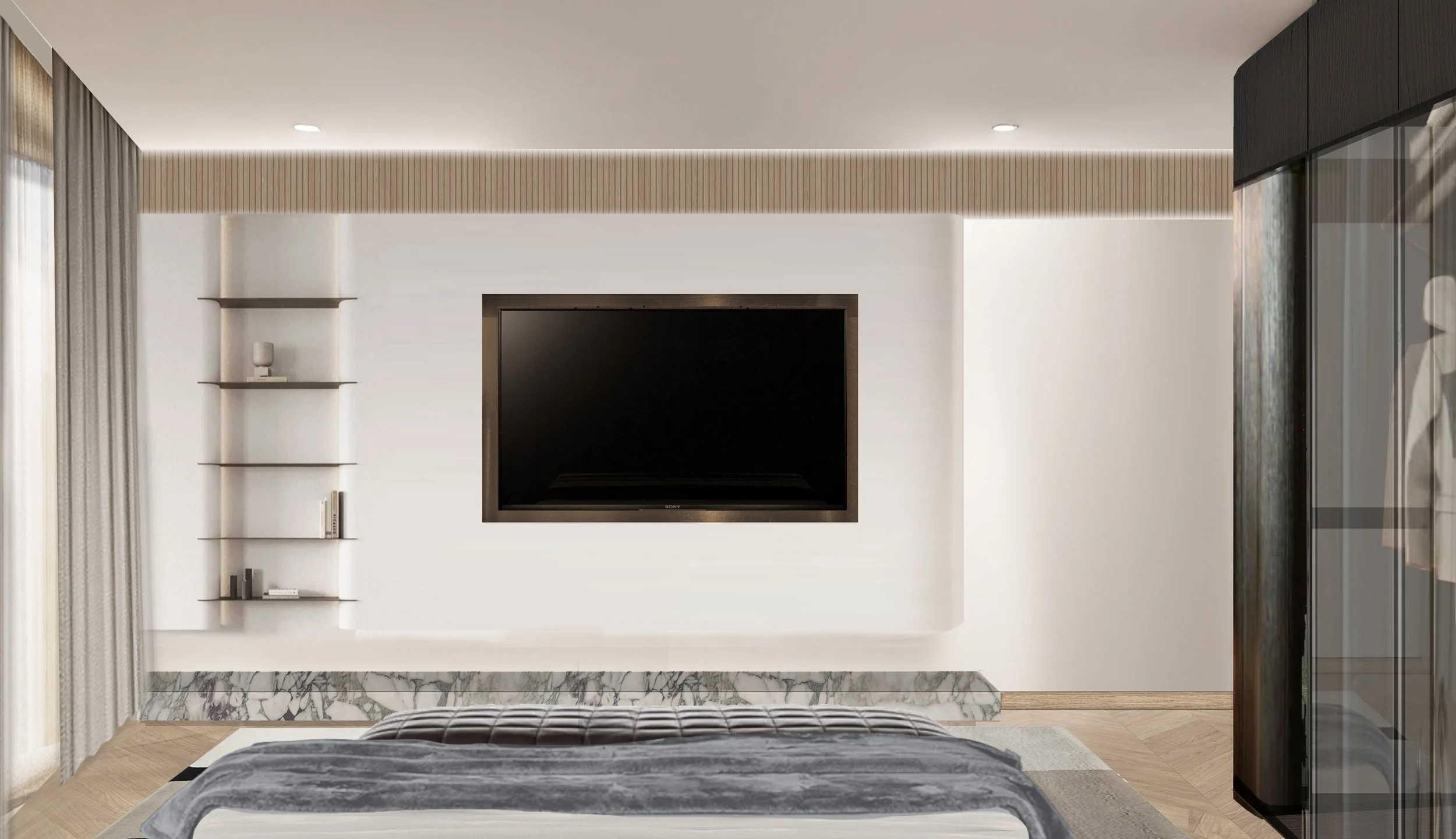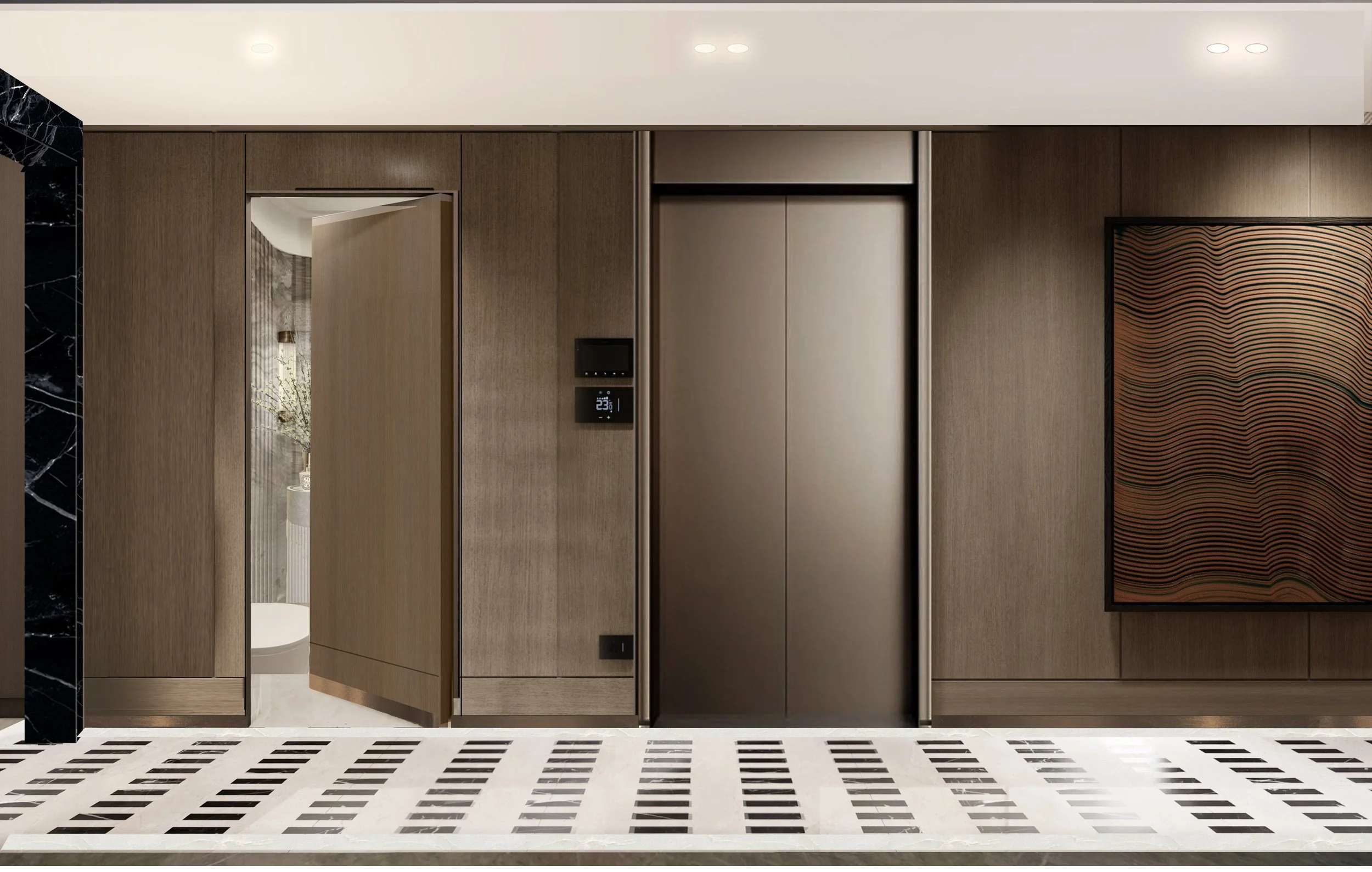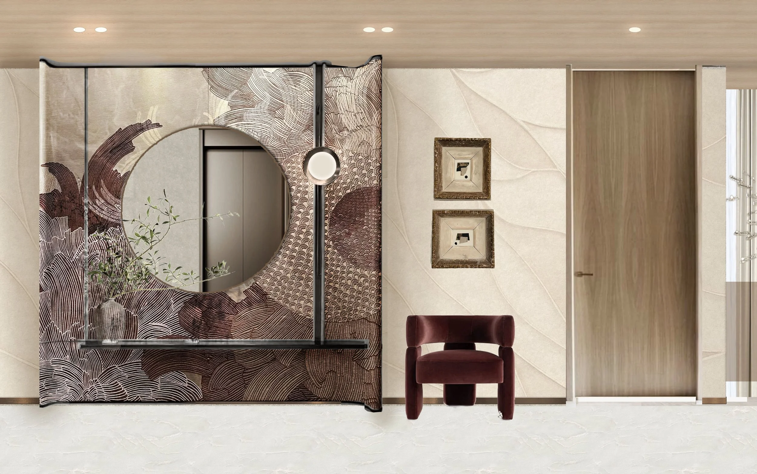 This penthouse is envisioned as a journey through spaces—from sunlit decks and a soaring double-height living room to a refined dining area and an intimate study designed for reflection. Private suites offer indulgent bathrooms, while every corner reflects a dialogue between grandeur and comfort. Designed as the family’s base in India, complementing their other homes abroad, the design blends handcrafted details with modern sophistication, layering textures, light, and proportion to create harmony. This shapes a penthouse that embodies timeless contemporary luxury.