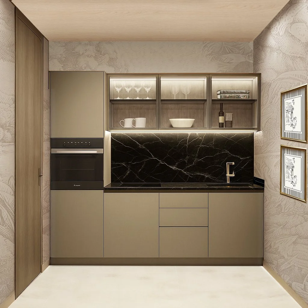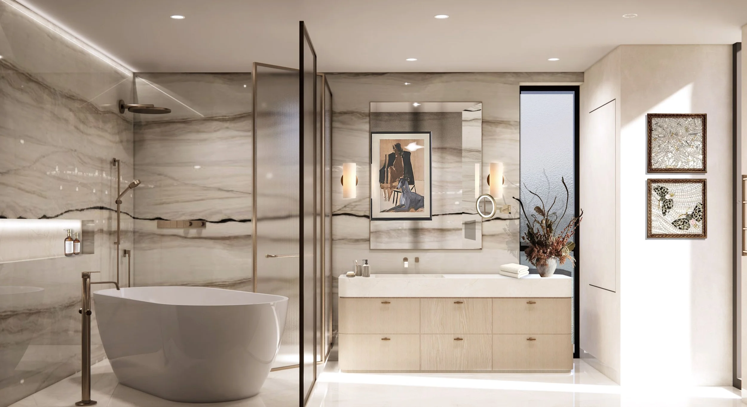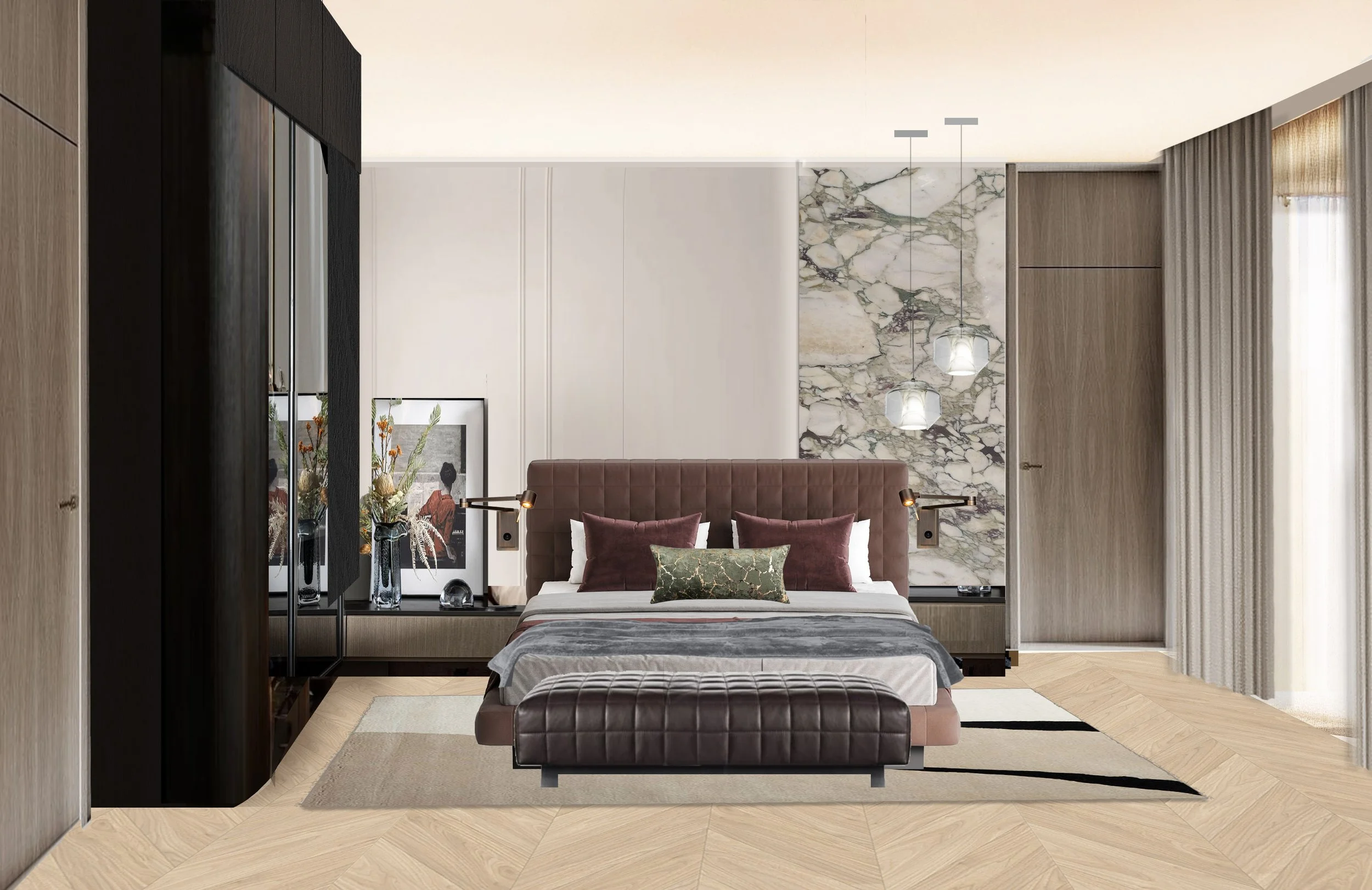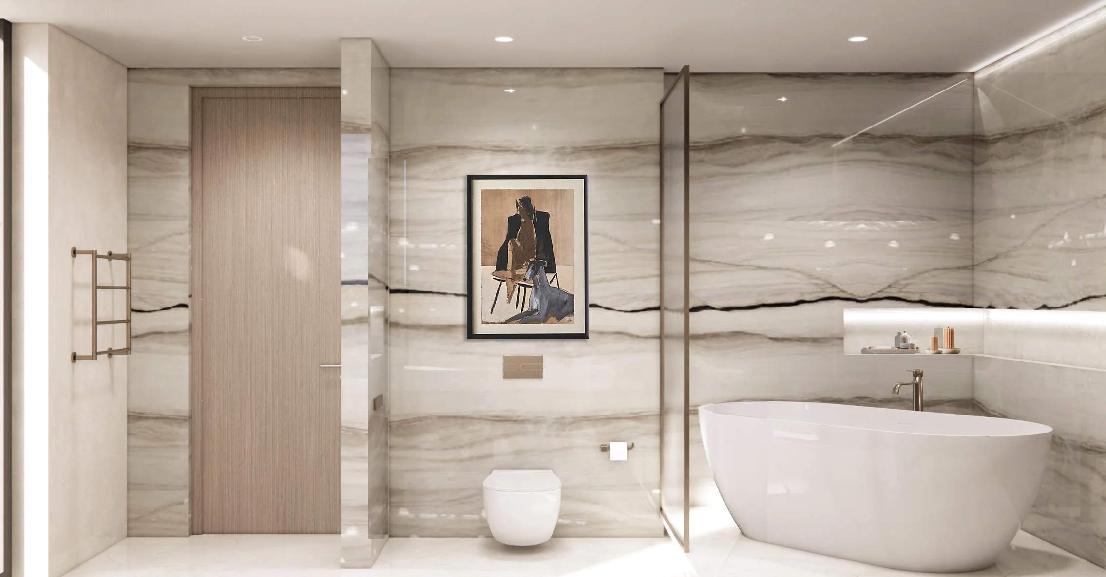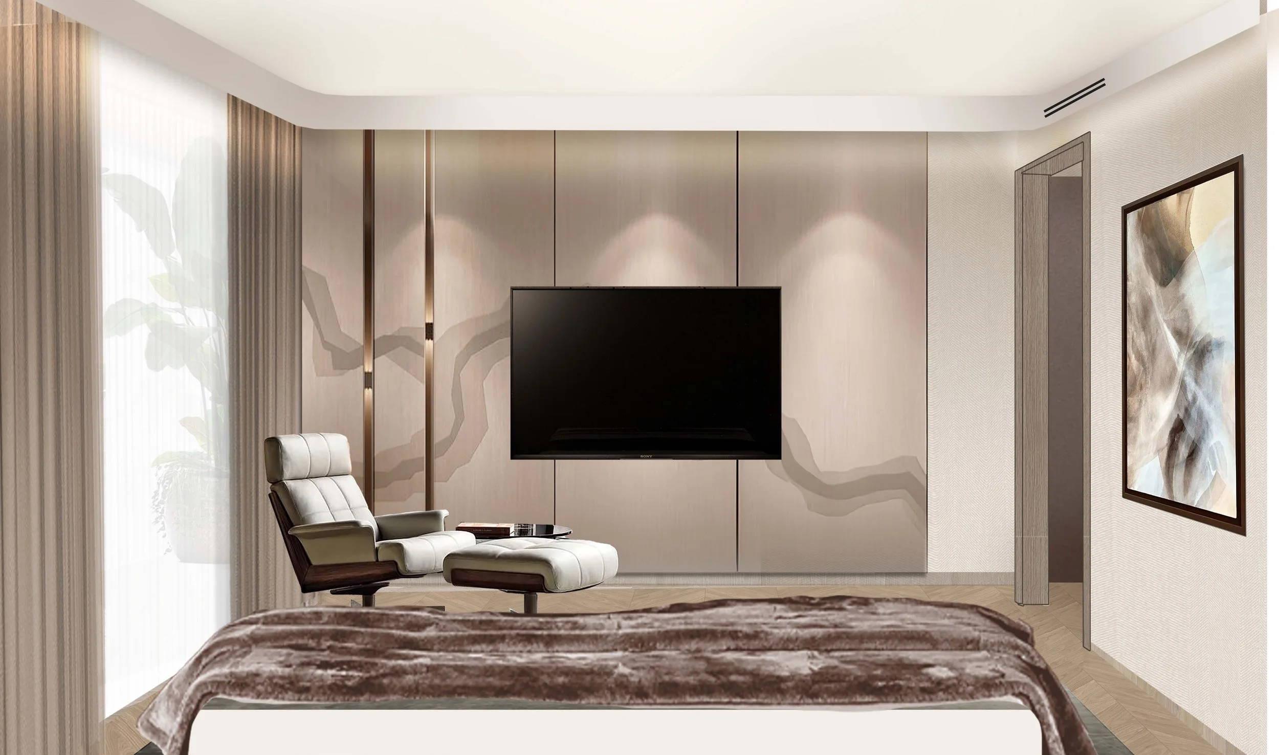 This penthouse is envisioned as a journey through spaces—from sunlit decks and a soaring double-height living room to a refined dining area and an intimate study designed for reflection. Private suites offer indulgent bathrooms, while every corner reflects a dialogue between grandeur and comfort. Designed as the family’s base in India, complementing their other homes abroad, the design blends handcrafted details with modern sophistication, layering textures, light, and proportion to create harmony. This shapes a penthouse that embodies timeless contemporary luxury.