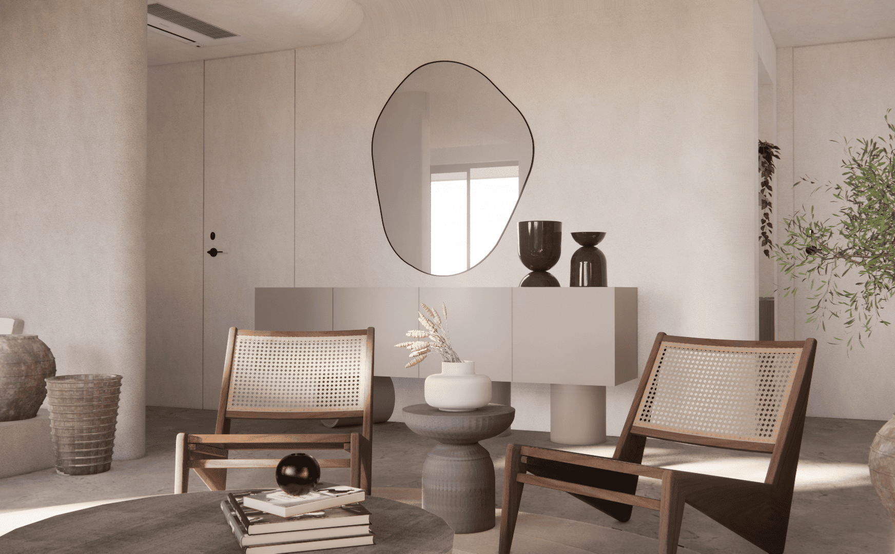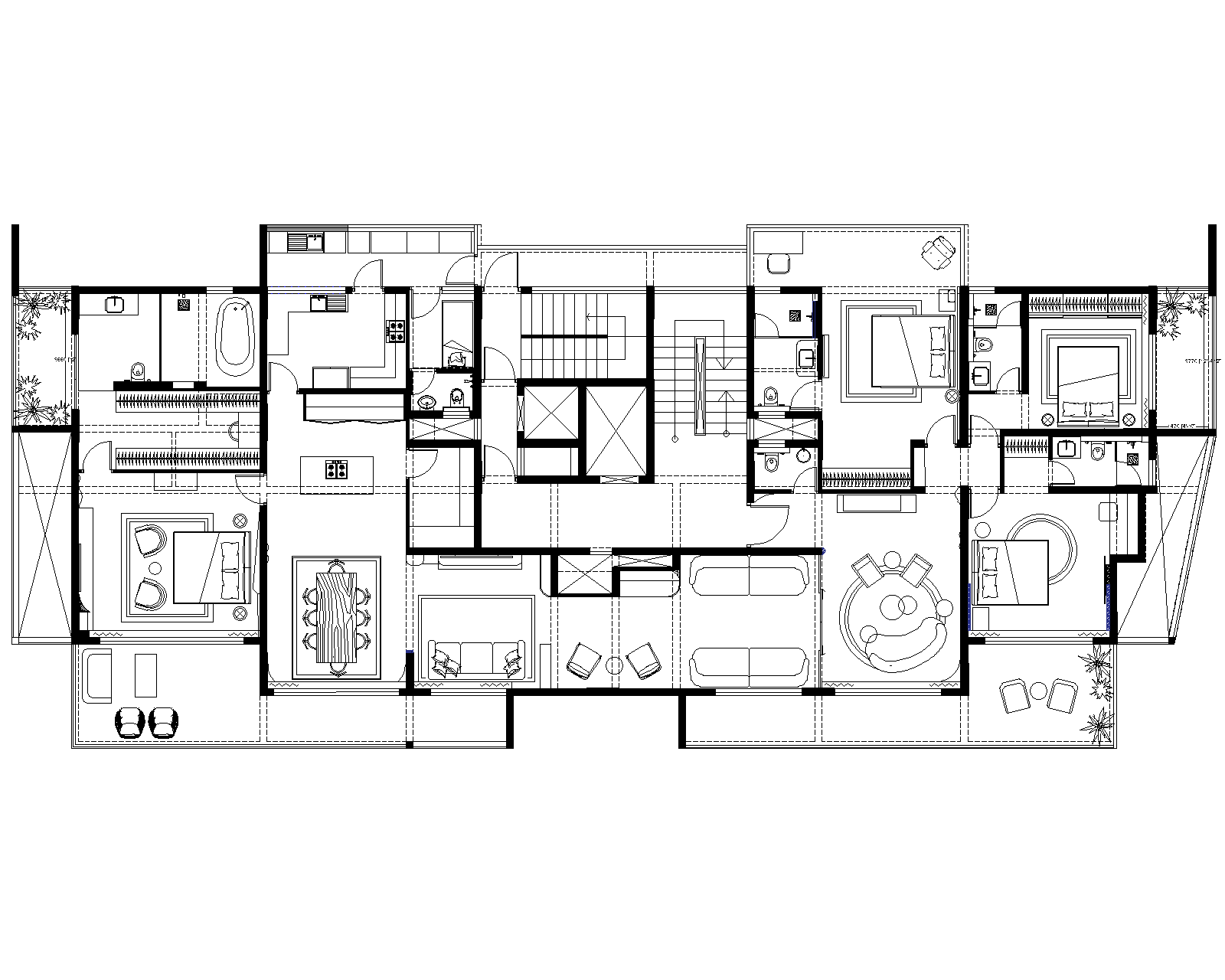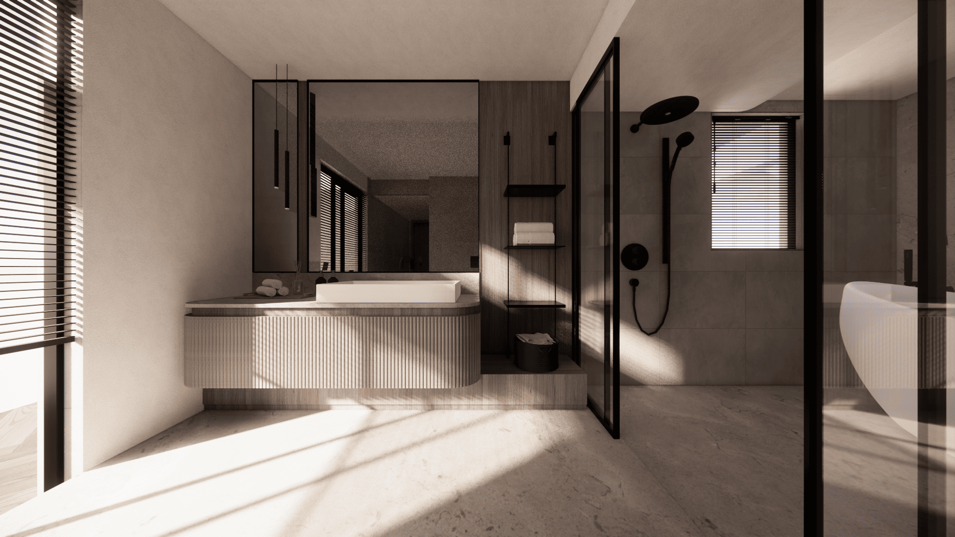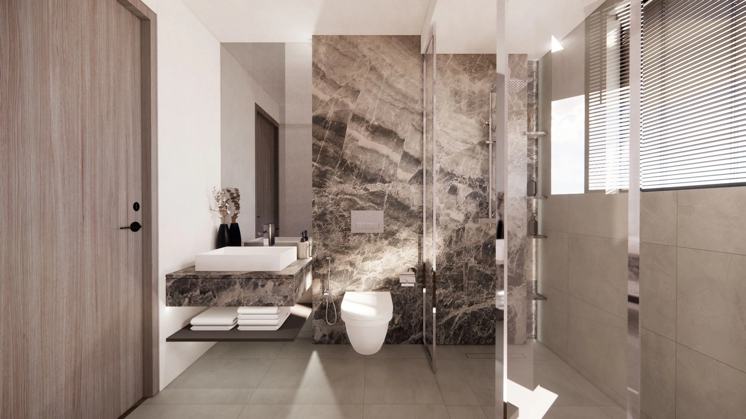 An elegant yet contemporary residence, where every space exudes quiet sophistication. The expansive foyer sets a welcoming tone with refined finishes. The long passage is used as a social space with a curated bar and lots of comfortable seating. Hidden doors open into private areas like the master suite and bedrooms, layered with calm palettes and bespoke details. Seamless texture paint flows across walls and ceilings, creating an interesting canvas to showcase the client's personality. The apartment embodies modern living with timeless charm.